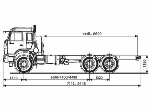 Шасси 8*8, длина рамы 8 135 мм, грузоподъемность 23.52 тонн