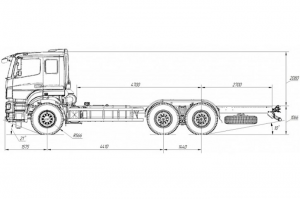Шасси 6*4, длина рамы 5 970 мм, межосевое растояние мм, грузоподъемность 12 тонн