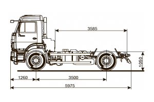 Шасси 6*4, длина рамы 5 970 мм, межосевое растояние мм, грузоподъемность 12 тонн