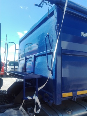 Платформа стальная, коробчатого типа. Боковые нижние борта открываются на верхней навеске. Верхние боковые борта закреплены жестко. Задний борт – распашные ворота. Запоры бортов механические, открываются в ручную. Для обслуживания тента на переднем борту установлена фиксированная площадка с лесенкой. Открывающие борта уплотнены резиновыми профилями. Зерновоз оснащен тентом, каркасом с наматывающим устройством. Тент сворачивается в продольном направлении.